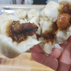 Knowing that I still had plenty of pork belly in my freezer, I took to the internet (Pinterest) to seek out a recipe for Char Siu Bao. I happened upon this blog and read thru it and decided it was a recipe I could try. After reading thru the full recipe, I realized it would take some work and a couple of days of prep. Mainly in regards to the pork. Luckily for me, one of the ingredients, Char Siu pork, was made slightly easier as I had just randomly without even thinking, Char Siu merinade. Still this did not speed things up, there was still the need to marinade the pork overnight before cooking it. Once cooked, it needed to be diced. Once the pork was ready and finished, it was time to make the buns. The only ingredient I did not have for the buns was Wheat starch. I used cornstarch instead, but I think if I were to go thru all that again, I might seek some out next time I am at the Asian market. In any case, my craving for Char Siu Bao had come to an end! The final finished bun was soft and the filling was sweet and tasty, just how I'd remembered. It wasn't a table of Dim Sum goodies, but it sure did satisfy the craving for the time being.